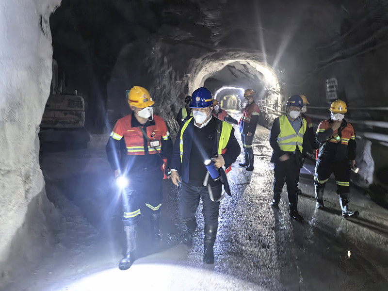 会后,张希望主任深入紫金山金铜矿井下作业面开展实地考察。张希望主任与井下一线操作工及技术人员就目前开采工艺的优缺点进行了深入交流,并深入浅出地阐述了"321"时采时填无尾矿采矿工艺体系,现场人员积极发言,围绕工艺细节与实际工况展开热烈讨论,此次技术交流为未来非煤矿山井工开采碰撞出一种全新工艺的可能。张希望主任秉持“劳动游戏化”理念,致力于通过提升矿山设备的机械化、智能化,实现“让工人有尊严劳动”。这些机械化、智能化的设备与工艺,如同为矿工配备了“隐形铠甲”和“智慧大脑”,让他们不再仅仅是繁重体力的付出者,更成为了先进技术的掌控者和矿山生产的智慧管理者。这种角色的转变,不仅显著提升了劳动效率和生产安全性,更重要的是,它让矿工们在现代化的作业环境中感受到了职业的价值与尊严,激发了他们的工作热情和创新活力,为矿山行业的高质量发展注入了源源不断的人文动力。