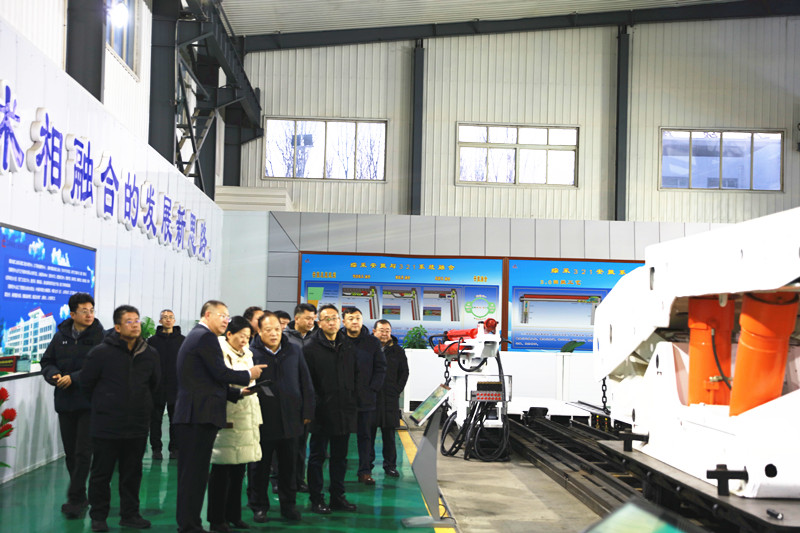 调研组一行参观了鑫丰集团“鑫智展厅”。在数字化展示区,观看了鑫丰集团发展历程、获得荣誉、产学研用融合发展、各项工艺及其配套智能化装备的动漫演示;在设备展示区,参观了最新研发的一车通智能化运输等引领全国智能化安、撤、运、支发展方向的六种技术及配套智能化装备,现场演示的远程控制作业场景,生动展现了集团“原始创新、完善创新、次第创新、衍生创新”四维创新理念的实践成果。张希望董事长详细介绍道:“这些技术突破已助力煤矿构建本质安全型作业环境,形成可复制的新质生产力模板,不仅填补多项行业技术空白,更重新定义了智能化安撤及运输的发展方向。