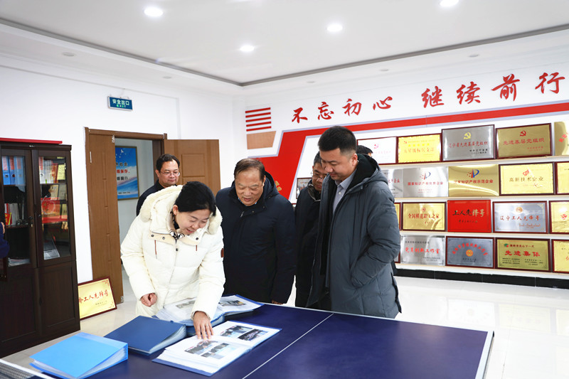 调研首站来到集团党群活动中心。党支部书记佟兰秋向调研组系统展示了鑫丰集团“融入式”党建特色模式——自2008年5月党支部成立以来,通过政企共建平台搭建、红色诵读品牌活动、专题宣讲进车间等创新载体,将党史国史教育与生产经营深度融合,成功打造“科创星火·雄鹰支部”省级非公党建标杆品牌。调研组重点考察了张希望党员创新工作室,现场见证党员项目分配表及113项专利成果,其中26项发明专利直接推动企业获评“国家专精特新重点小巨人”称号。党员创新工作室高杨同志研发设备10余套,获“全国五一劳动奖章”,铁岭市优秀共产党员,是党员先锋作用的生动体现。王惠莲对集团“把政治坚定、业务过硬的复合型人才选配到支部班子”的选拔机制给予高度评价,并强调要持续发挥党员在科技创新、智能化转型中的先锋引领作用,真正实现党建工作与企业发展的“双向赋能”。